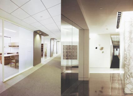 说明:VANCO ENERGY WORLD HEADQUARTERS办公室装潢体现了跨国型的大型能源公司,其办公室装潢符合欧美后现代主义风格,空间装修简洁严谨,很难说出哪个部位有不妥之处,装修选材不张扬,色彩运用不跳跃,算得上是办公室装潢设计的高水准,从装修表面看没有任何过分装饰,也看不到有任何的绚丽夺目的装修材料,但办公室设计整体给人感觉高档,有品位,我们提倡这样的做法,注重美的运用,更注重每位设计师审美观的提升。